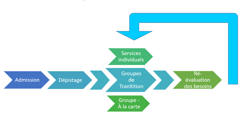 - Bien qu’il soit ancré dans l’intervention de groupe, le programme TranXition peut également soutenir les participants par une intervention individuelle.