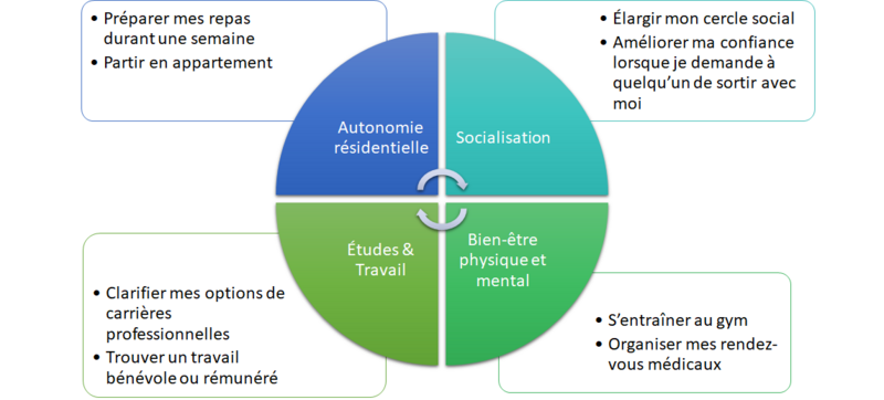 Nous nous efforçons d’aider les jeunes à définir des objectifs dans au moins l’une des quatre « sphères d’opportunités ».